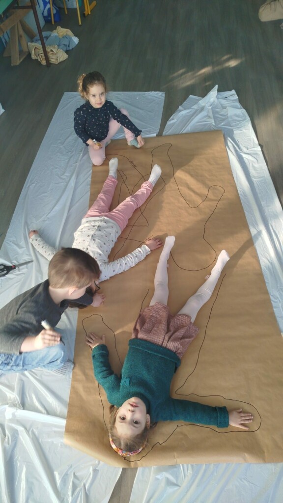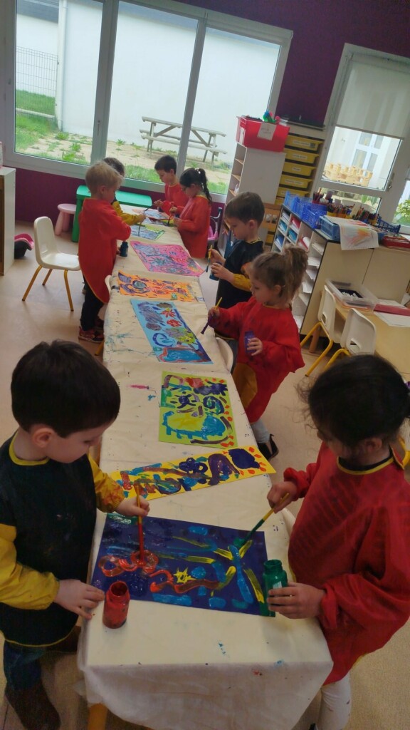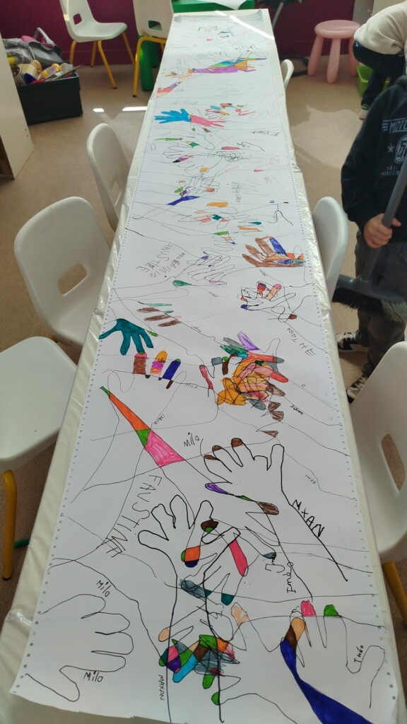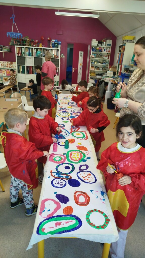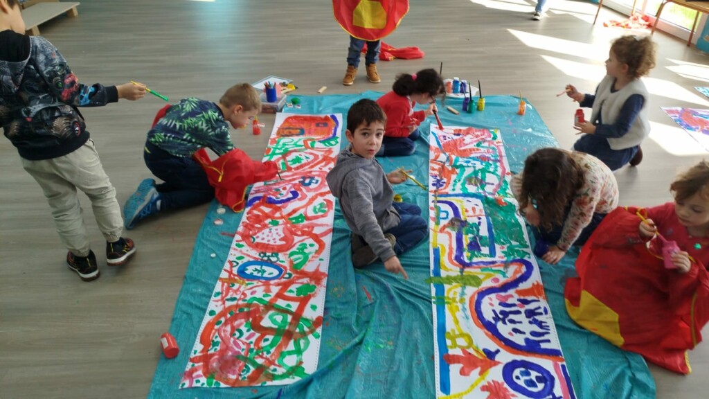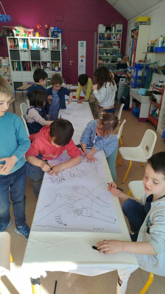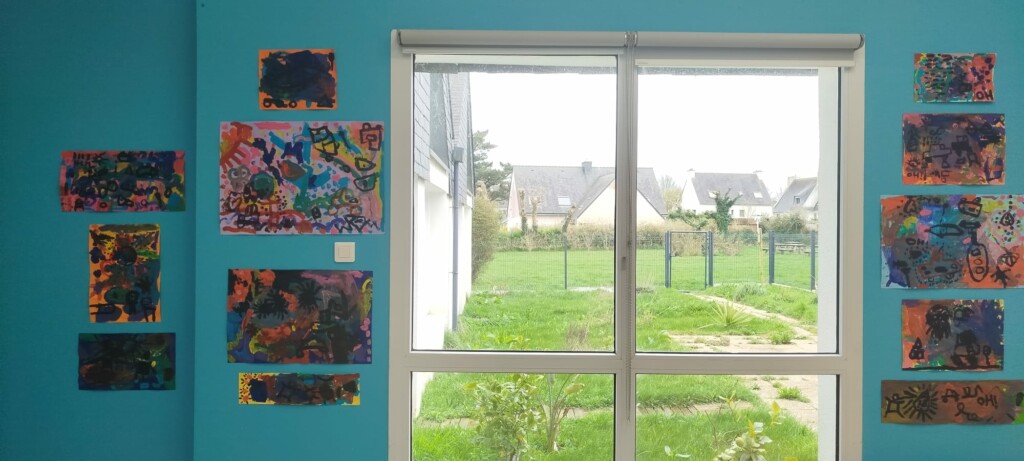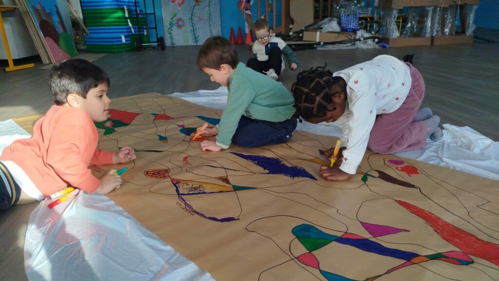 Beaucoup d’ateliers collectifs ont été mis en œuvre sur de très grands supports, des ateliers en musique, un gros travail sur le repérage dans l’espace…